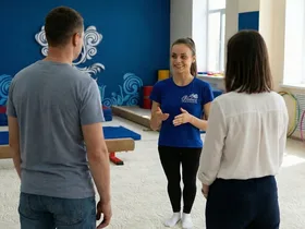 Когда вы приходите на занятие, тренер сразу знакомится с ребенком, объясняет, как все устроено, и показывает зал.